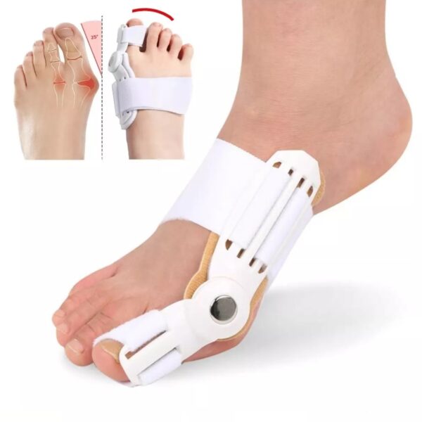 Férula de descanso, se puede usar tanto en el día como en la noche. Aplica un sistema de presión de 3 puntos para aliviar la deformación del hallux valgus o juanetes. Ayuda a ajustar el dedo gordo para evitar el valgus. Se ajusta cómodamente en el hueso y el dedo del pie